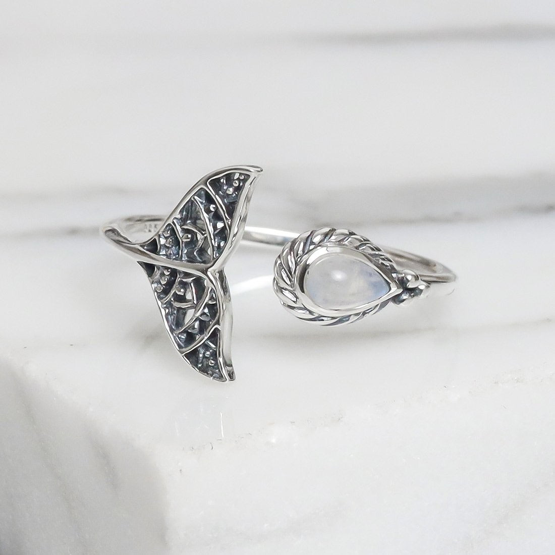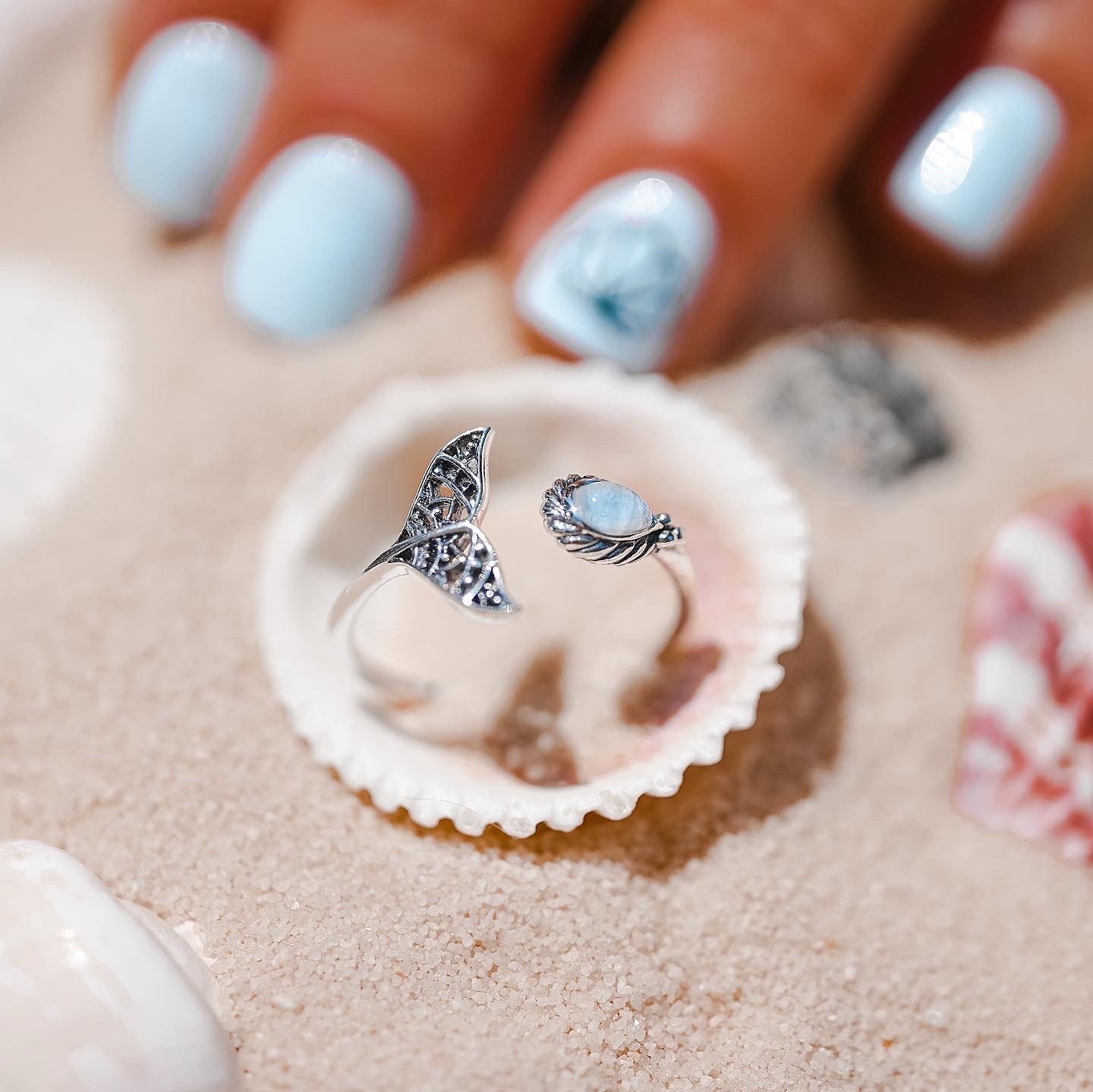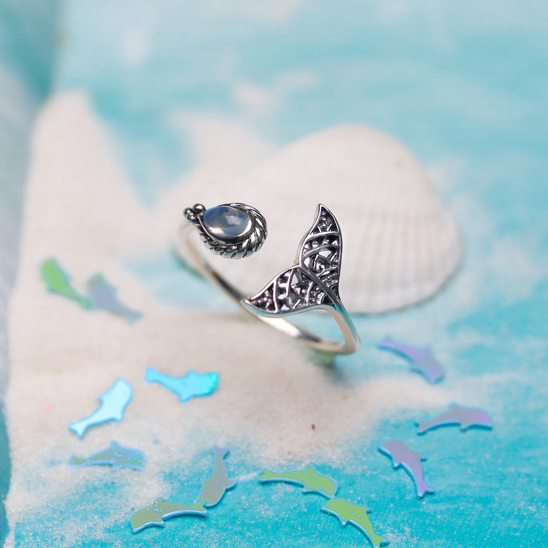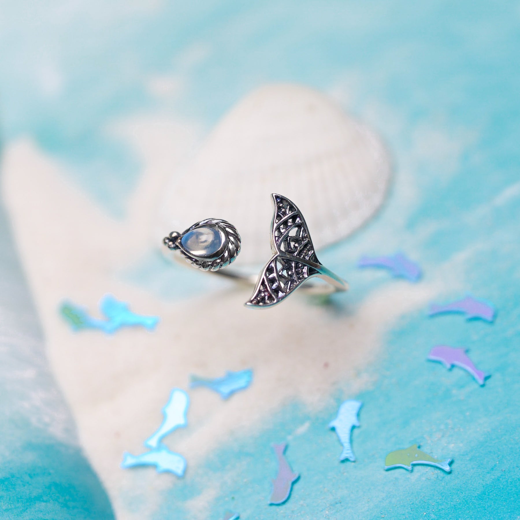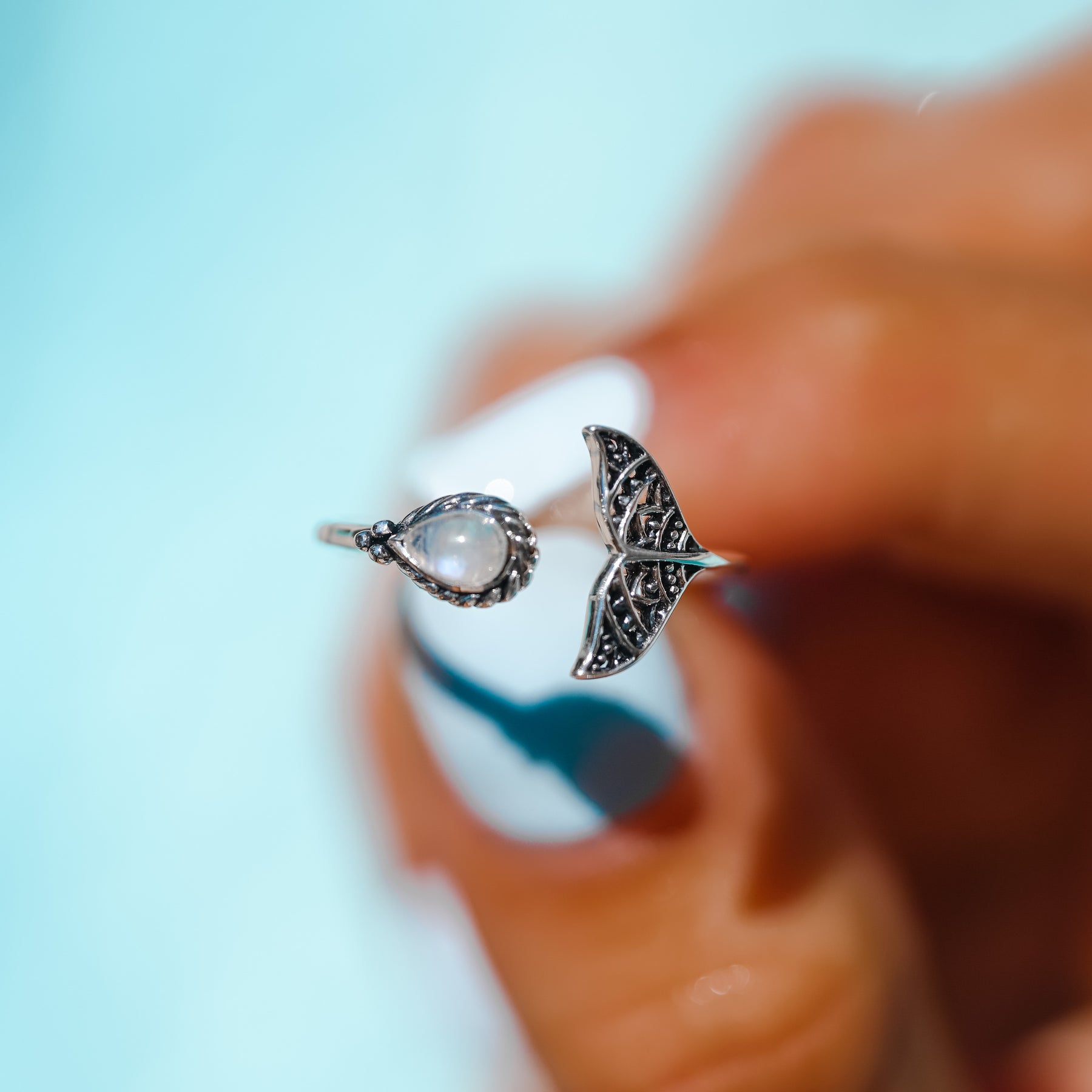 PREVENTA Anillo Colita Bajo el Mar Piedra Luna Ajustable